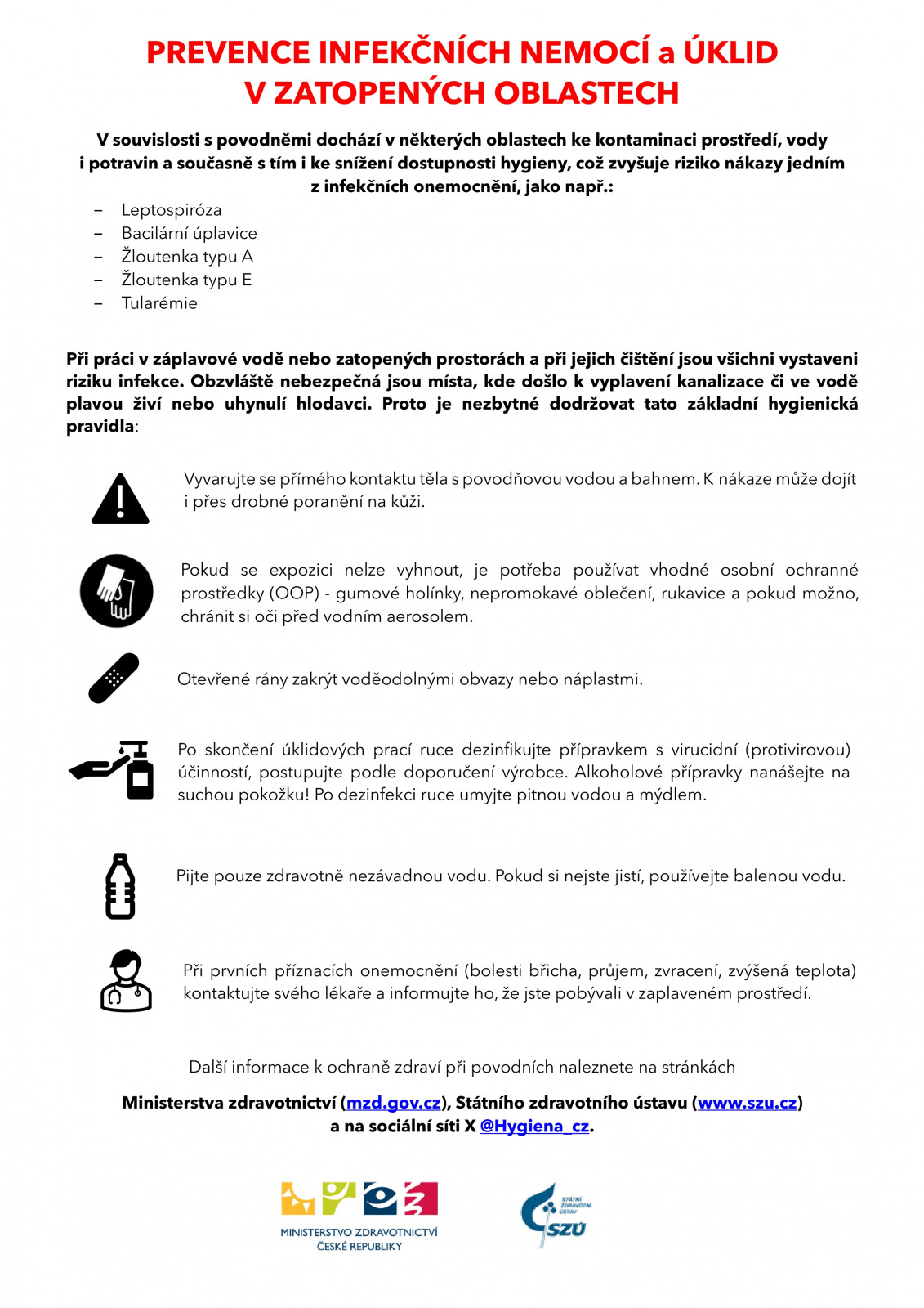 Prevence infekčních nemocí a úklid v zatopených oblastech